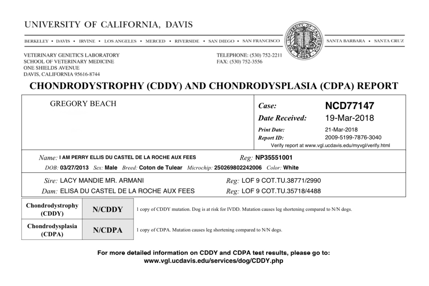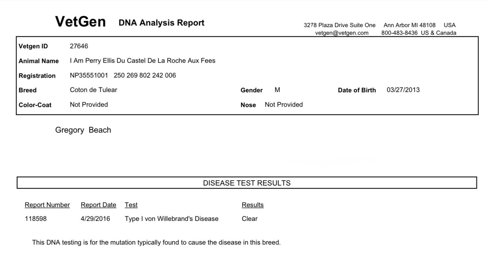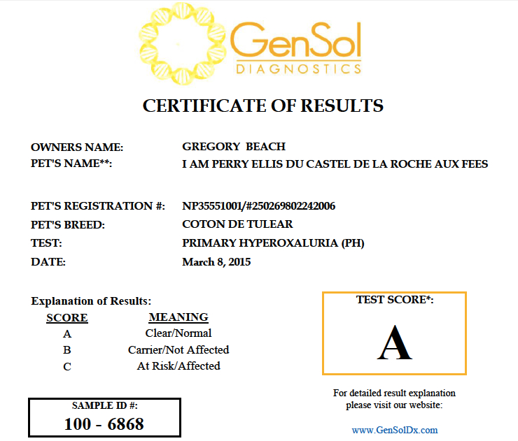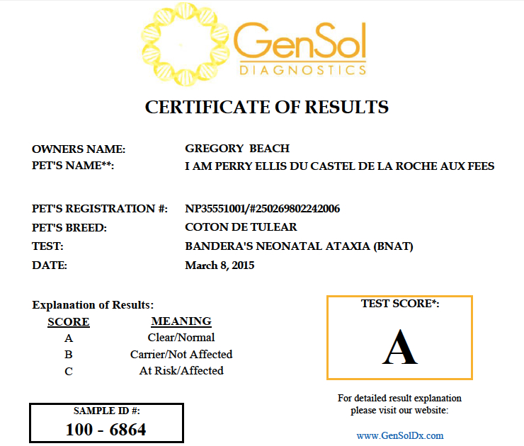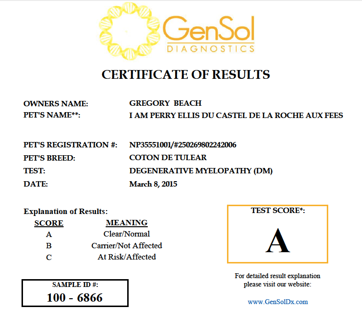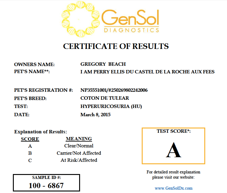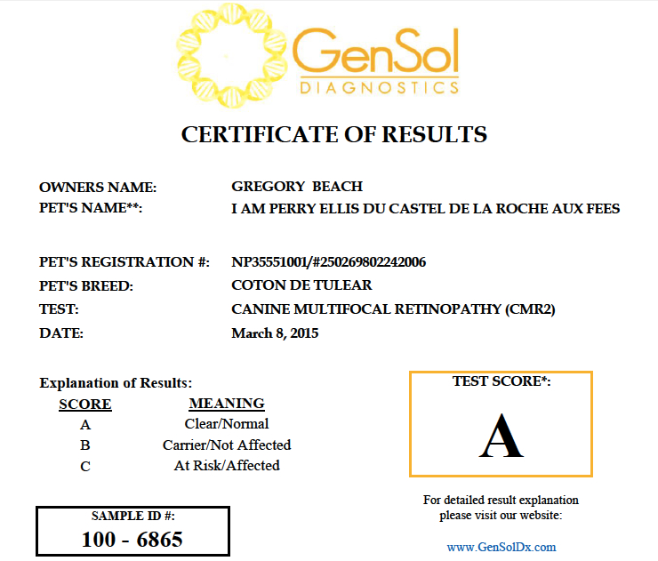 When the Coton first came to the USA it was not initially a part of the AKC Stud Book.  We were known as a Rare Breed at that time. It took several years for the breed to be recognized by the AKC.  While we were working to achieve that status, in lieu of an official registration certificate, the AKC issued certificates that showed our dogs as Foundation Stock, only later  issuing Official AKC Registration Certificates upon the breed receiving full AKC recognition in 2014.  Below is a copy of Perry’s original Foundation Stock Certificate.